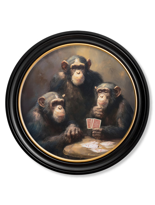 The Card-Playing Chimps - Oxford Round Frame