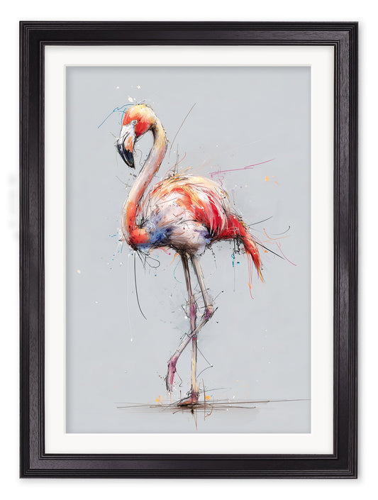 Pink Flamingo Cosy Sketch - Black Hurstwood Frame