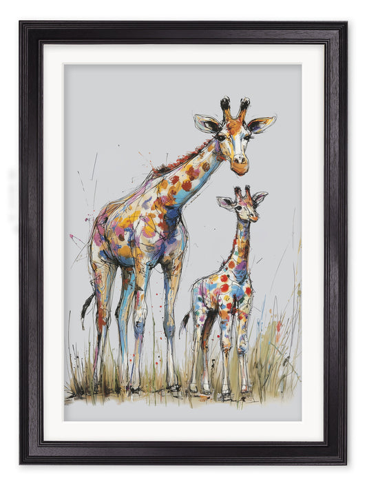 Family of Giraffes Cosy Sketch - Black Hurstwood Frame